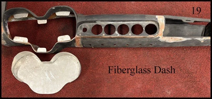*Body - left and right window lifts, complete top mechanisms and mounts. Rear top catches, new taillights lenses, original bases, headlight buckets, driving lights, parking lights, one seat frame and seat track, original heater and remote fan, original 250 wiring harness, battery box, plastic mount plate, windshield post and all hardware, levers for the top latches, original horn set (disassembled), floors are installed, front brakes and rotors, hood and deck latches, side trim and jack plugs, wiper motor, Fiberglass dash is included. The car will be furnished with the doors and body mounted on a temporary basis for shipping. Many other small, important aluminum body parts are included.